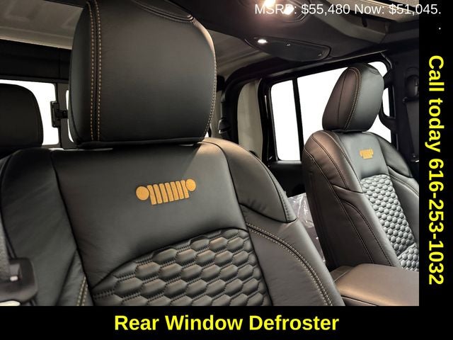 4WD | Four Wheel Drive, Auxiliary Switches, Body Color 3-Piece Hard Top, Cloth Low-Back Bucket Seats, Convenience Group, Corning Gorilla Glass, Dark Sky Appearance Package, Deep Tint Sunscreen Windows, Heated Front Seats, Heated Steering Wheel, Heavy-Duty Engine Cooling, MOPAR Black Stitched Leather Upgrade, Mopar Black Tubular Side Steps, MOPAR Spray In Bedliner, Power Heated Mirrors, Quick Order Package 24S Sport S, Rear Sliding Window, Rear Window Defroster, Remote Start System, Trailer Tow & Aux Switch Group, Wheels: 17 x 7.5 Machined w/Black Pockets.