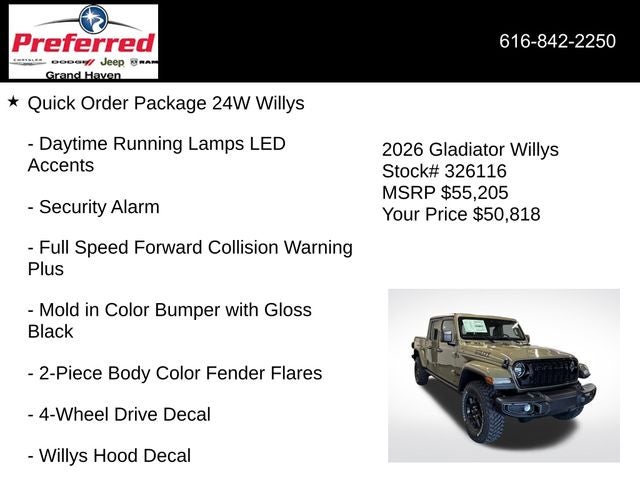 This 2026 Jeep Gladiator Willys is a rugged and capable off-road companion that's ready to take on any adventure.