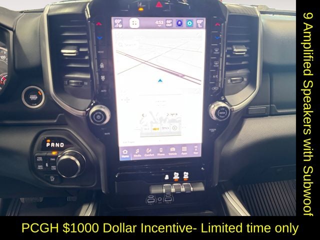 Big Horn Level 2 Equipment Group (115V Auxiliary Power Outlet, 115V Auxiliary Rear Power Outlet, 12 Touchscreen Display, 2nd Row in Floor Storage Bins, 3 Rear Seat Head Restraints, 4 Way Front Headrests, 400W Inverter, 4G LTE Wi-Fi Hot Spot, 9 Amplified Speakers with Subwoofer, Air Conditioning ATC with Dual Zone Control, Apple CarPlay, Auto Power-Folding Mirrors, Auto-Dimming Exterior Driver Mirror, Auto-Dimming Rear-View Mirror, Black Exterior Mirrors, Black Premium Power Mirrors, Body Color Fender Flares, Bucket Seats, Center Console Parts Module, Cluster 7.0 TFT Color Display, Configurable Drive Mode, Connected Travel and Traffic Services, Connectivity - US/Canada, Convex Wide-Angle Exterior Mirror Insert, Deluxe Cloth Bucket Seats, Disassociated Touchscreen Display, Exterior Mirrors Courtesy Lamps, Exterior Mirrors with Heating Element, Exterior Mirrors with Supplemental Signals, Front Seat Back Map Pockets, Full Length Floor Console, Global Telematics Box Module, Glove Box Lamp, Google Android Auto, GPS Antenna Input, GPS Navigation, HD Radio, Heated Front Seats, Heated Steering Wheel, Integrated Center Stack Radio, Integrated Voice Command with Bluetooth®, Leather Wrapped Steering Wheel, LED Dome Lamp with on/Off Switch, LED Footwell Lighting, Manual Adjust 4-Way Front Passenger Seat, Media Hub with 2 Charge Only USBs, Overhead LED Lamps, Power 2-Way Driver Lumbar Adjust, Power Adjust 8-Way Driver Seat, Power Adjustable Pedals, Premium Overhead Console, Radio: Uconnect 5 Navigation with 12.0 Displ Price includes: $3500 - 2026 National Retail Consumer Cash . Exp. 03/02/2026 $500 - 2026 Great Lakes BC Truck Month Bonus Cash