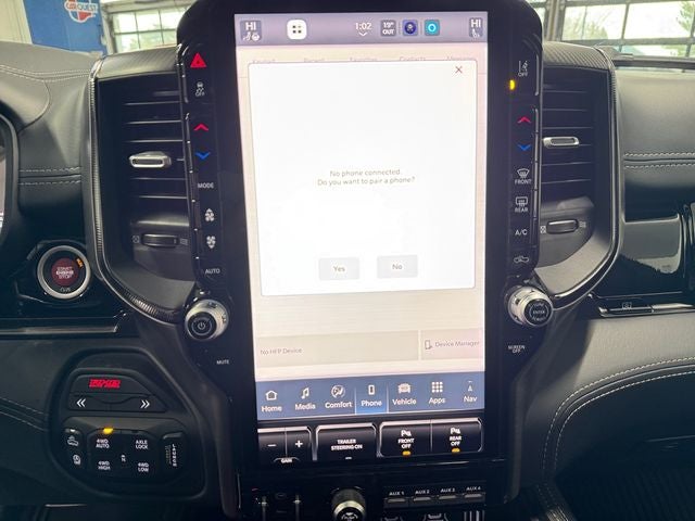 Bed Utility Group (MOPAR Deployable Bed Step, Exterior 115V AC Outlet, and MOPAR 4 Adjustable Cargo Tie-Down Hooks), RHO Level 1 Equipment Group (Driver Power Seat Back Massage, Drowsy Driver Detection, Front Passenger Power Seat Back Massage, GPS Navigation, Power Adjustable Pedals with Memory, Power Tailgate, Radio: Uconnect 5 Nav with 14.4 Display, Radio/Driver Seat/Mirrors/Pedals Memory, Rain Sensitive Windshield Wipers, 12-Way/1-Way Trailer Connector, 14.4 Touchscreen Display, 240 Amp Alternator, 4G LTE Wi-Fi Hot Spot, Connected Travel and Traffic Services, Connectivity - US/Canada, Disassociated Touchscreen Display, Driver Seat Memory, Driver/Passenger Wrapped Assist Handles, Dual Wireless Charging Pad, Evasive Steer Assist, Exterior Mirrors with Memory, Front Passenger Interactive Display, Full Length Premium Upgraded Floor Console, Hands-Free Active Driving Assist System, Harman/Kardon 19 Speaker Premium Sound, HD Radio, Heads-Up Display, Heated Second Row Seats, Integrated Center Stack Radio, Integrated Voice Command with Bluetooth®, Intersection Collision Assist System, Leather/Carbon Flat-Bottom Steering Wheel, LED CHMSL Lamp, Luxury Front Door Trim Panel, Premium Wrapped Instrument Panel Bezel, Real Carbon Fiber Interior Accents, Rear 60/40 Folding Split Recline Seat, SiriusXM Radio Service, Smartphone as a Key Capable, Surround View Camera System, Traffic Sign Recognition, USB Host Flip, Ventilated Front Seats, and Ventilated Rear Seats), Towing Technology Group (Trailer Hitch Line-Up Assist and Trailer Reverse Guidance), Trailer Tow Group (Trailer Reverse Steering Control and Trailer Tire Pressure Monitoring System), Quick Order Package 22Y RHO, Dual-Pane Panoramic Sunroof, Front dual zone A/C, Heated door mirrors, Heated front seats, Heated steering wheel, Navigation System, Power door mirrors, 10 Speakers, 3.92 Rear Axle Ratio, 4-Wheel Disc Brakes, ABS brakes, Adaptive suspension, Adjustable pedals, Air Conditioning, Alloy wheels, AM/FM radio, Apple CarPlay/Android Auto, Auto High-beam Headlights, Auto Power-Folding Mirrors, Auto-dimming door mirrors, Auto-Dimming Exterior Driver Mirror, Auto-Dimming Exterior Passenger Mirror, Auto-dimming Rear-View mirror, Automatic temperature control, Black Exterior Mirrors, Black Power-Fold Trailer Tow Mirrors, Brake assist, Compass, Delay-off headlights, Dome Dual LED Reading Lamp, Driver door bin, Driver vanity mirror, Dual front impact airbags, Dual front side impact airbags, Electronic Stability Control, Engine Block Heater, Exterior Mirrors Courtesy Lamps, Exterior Mirrors with Heating Element, Exterior Mirrors with Supplemental Signals, Exterior Parking Camera Rear, Flareside Box, Forward and Reverse Utility Lights, Front anti-roll bar, Front Bucket Seats, Front Center Armrest w/Storage, Front fog lights, Front reading lights, Front wheel independent suspension, Fully automatic headlights, Garage door transmitter, Illuminated entry, Leather Shift Prices based on dealer discounts and rebates. Some rebates may be for lease to purchase program, see dealer for details. Not all customers qualify for all rebates.$2000 - 2026 National Select Inventory Bonus Cash. Exp