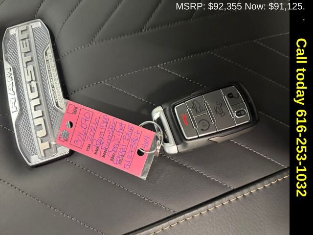 Quick Order Package 22V Tungsten, Adjustable pedals, Apple CarPlay/Android Auto, Auto-Dimming Exterior Driver Mirror, E-Locker Rear Axle, Front Bucket Seats, Front dual zone A/C, Heated door mirrors, Heated front seats, Heated rear seats, Heated steering wheel, MyFlexCare Service Plan, Navigation System, Power adjustable front head restraints, Power door mirrors, Power moonroof, Radio: Uconnect 5 Nav with 14.4 Display, Trailer Brake Control, Ventilated front seats, Ventilated rear seats, 12-Way/1-Way Trailer Connector, 3.92 Rear Axle Ratio, 4-Wheel Disc Brakes, ABS brakes, Air Conditioning, Alloy wheels, AM/FM radio, Audio memory, Auto High-beam Headlights, Auto Power-Folding Mirrors, Auto-dimming door mirrors, Auto-dimming Rear-View mirror, Auto-leveling suspension, Automatic temperature control, Bodyside moldings, Brake assist, Bumpers: body-color, Chrome Exterior Mirrors, Compass, Delay-off headlights, Driver door bin, Driver vanity mirror, Dual front impact airbags, Dual front side impact airbags, Electronic Stability Control, Exterior Mirrors Courtesy Lamps, Exterior Mirrors with Heating Element, Exterior Mirrors with Memory, Exterior Mirrors with Supplemental Signals, Exterior Parking Camera Rear, Front anti-roll bar, Front Center Armrest w/Storage, Front fog lights, Front reading lights, Front wheel independent suspension, Fully automatic headlights, Garage door transmitter, Heads-Up Display, Illuminated entry, Leather steering wheel, Low tire pressure warning, Manufacturer's Statement of Origin, Memory seat, Occupant sensing airbag, Outside temperature display, Overhead airbag, Overhead console, Panic alarm, Passenger door bin, Passenger vanity mirror, Pedal memory, Power driver seat, Power passenger seat, Power steering, Power windows, Premium Leather Bucket Seats, Radio data system, Rain sensing wipers, Rear anti-roll bar, Rear reading lights, Rear seat center armrest, Rear step bumper, Rear window defroster, Remote keyless entry, Security system, Speed control, Split folding rear seat, Steering wheel mounted audio controls, Tachometer, Telescoping steering wheel, Tilt steering wheel, Traction control, Trip computer, Turn signal indicator mirrors, Variably intermittent wipers, Voltmeter, and Wheels: 22 x 9 Polish/Painted with Inserts.