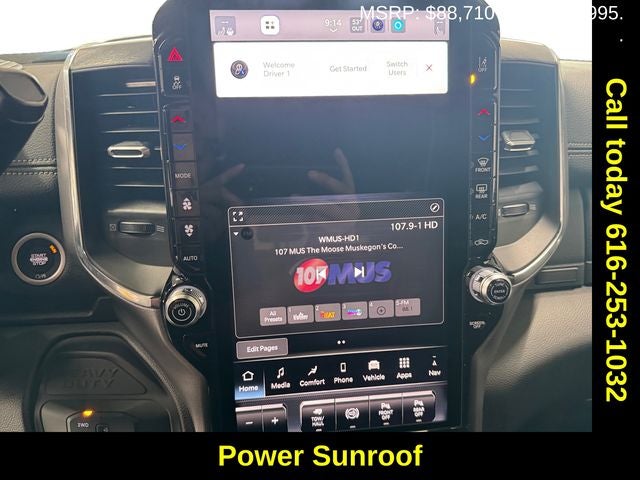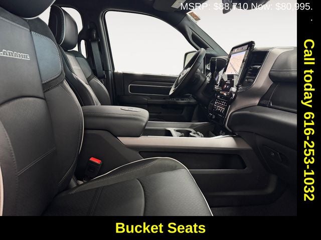 Leather, 4WD | Four Wheel Drive, Adaptive Steering System, Black Wheel Center Hub, Bucket Seats, CTR Stop Lamp w/Cargo View Camera, Drowsy Driver Detection, Folding Flat Load Floor Storage, Front dual zone A/C, GPS Navigation, Heated Front Seats, Heated Steering Wheel, High Back Seats, Laramie Level 2 Plus Equipment Group, Leather Trimmed Bucket Seats, LED Bed Lighting, MOPAR Deployable Bed Step, MOPAR Spray In Bedliner, Night Edition, Power Adjustable Pedals w/Memory, Power Deployable Running Boards, Power Heated Fold Telescopic Mirrors w/Memory, Power Sunroof, Power-Adjustable Convex Aux Mirrors, Quick Order Package 24H Laramie, Radio: Uconnect 5 Nav w/14.4 Display, Radio/Driver Seat/Mirrors/Pedals Memory, Rain Sensitive Windshield Wipers, Remote Tailgate Release, Sport Performance Hood, Traffic Sign Recognition, Ventilated Front Seats, Wheels: 20 x 8.0 Black Painted Aluminum.