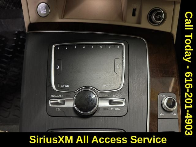 Atlas Beige Leather, 10 Speakers, DVD-Audio, Emergency communication system: Audi connect CARE, Memory seat, Navigation System, Power driver seat, Power Liftgate, Radio data system, Radio: MMI Navigation Plus System, Rain sensing wipers, SiriusXM All Access Service, SiriusXM Satellite Radio, Turn signal indicator mirrors, 4-Wheel Disc Brakes, 5.302 Axle Ratio, 8-Way Power Front Bucket Seats, ABS brakes, Air Conditioning, Alloy wheels, AM/FM radio: SiriusXM, Audi smartphone interface (Apple CarPlay/Android Auto), Auto-dimming door mirrors, Auto-dimming Rear-View mirror, Automatic temperature control, Brake assist, Bumpers: body-color, Compass, Delay-off headlights, Driver door bin, Driver vanity mirror, Dual front impact airbags, Dual front side impact airbags, Electronic Stability Control, Exterior Parking Camera Rear, Four wheel independent suspension, Front anti-roll bar, Front Bucket Seats, Front Center Armrest, Front dual zone A/C, Front fog lights, Front reading lights, Garage door transmitter: HomeLink, Genuine wood console insert, Genuine wood dashboard insert, Genuine wood door panel insert, Heated door mirrors, High intensity discharge headlights: Xenon plus, Illuminated entry, Leather Seating Surfaces, Leather Shift Knob, Leather steering wheel, Low tire pressure warning, Occupant sensing airbag, Outside temperature display, Overhead airbag, Overhead console, Panic alarm, Passenger door bin, Passenger vanity mirror, Power door mirrors, Power passenger seat, Power steering, Power windows, Rear air conditioning, Rear anti-roll bar, Rear fog lights, Rear reading lights, Rear seat center armrest, Rear window defroster, Rear window wiper, Remote keyless entry, Roof rack, Security system, Speed control, Speed-sensing steering, Speed-Sensitive Wipers, Split folding rear seat, Spoiler, Steering wheel mounted audio controls, Tachometer, Telescoping steering wheel, Tilt steering wheel, Traction control, Trip computer, Variably intermittent wipers, and Wheels: 8 x 18 5-Double-Spoke Dynamic Design.