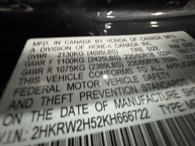 Crystal Black Pearl 2019 Honda CR-V EX 1.5 Liter AWD AWD CVT 27/33 City/Highway MPG 1.5L I4 DOHC 16V
