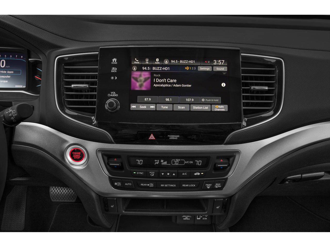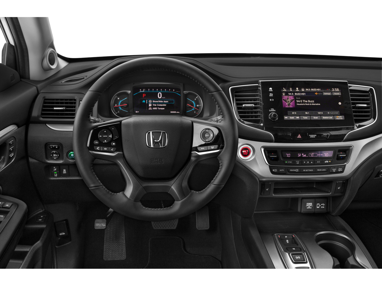 - Radio: 215-Watt Audio System -inc: 7 speakers, subwoofer, 8" display audio w/high-resolution electrostatic touch-screen and customizable feature settings, 2.5-amp USB smartphone/audio interface front console (1 port), Bluetooth® HandsFreeLink, Bluetooth® streaming audio, MP3/auxiliary input jack, Radio Data System (RDS), Speed-Sensitive Volume Compensation (SVC), 2.5-amp USB charging port in center console (1 port) and 2nd row (2 ports), HondaLink, CabinControl remote compatibility, Apple CarPlay integration, Android Auto integration, SMS text message function (Compatible w/select phones w/Bluetooth®, Your wireless carrier's rate plans apply, State or local laws may limit use of texting feature, Only use texting feature when conditions allow you to do so safely.), SiriusXM radio (SiriusXM services require a subscription after any trial period, If you decide to continue your SiriusXM service at the end of your trial subscription, the plan you choose will automatically renew and bill at then-current rates until you call SiriusXM at 1-866-635-2349 to cancel, See our customer agreement for complete terms at www.siriusxm.com, Fees and programming subject to change, Available in the 48 contiguous United States and D.C, SiriusXM and all related marks and logos are trademarks of SiriusXM Radio Inc, and HD Radio