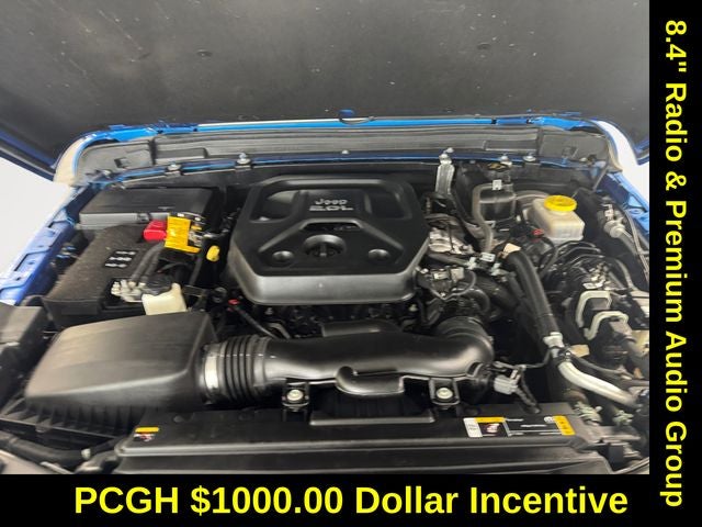 Step inside and you'll be greeted by a host of premium amenities, including an 8.4-inch touchscreen display with Uconnect 4, Apple CarPlay, and Android Auto integration. The Sun and Sound Package adds an Alpine premium audio system, remote USB port, and the convenience of a one-touch power top. Stay comfortable year-round with the Cold Weather Group, featuring a heated steering wheel and front seats.