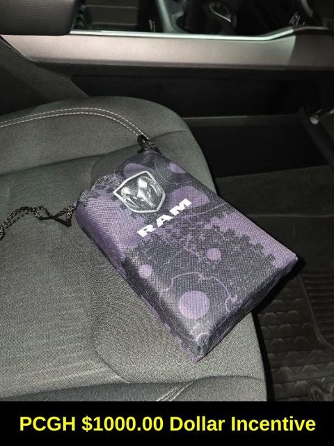 Big Horn Level 2 Equipment Group (115V Auxiliary Power Outlet, 115V Auxiliary Rear Power Outlet, 2nd Row In Floor Storage Bins, 400W Inverter, 4G LTE Wi-Fi Hot Spot, 8.4 Touchscreen Display, Air Conditioning ATC w/Dual Zone Control, Apple CarPlay, Auto-Dimming Exterior Driver Mirror, Auto-Dimming Rear-View Mirror, Black Exterior Mirrors, Black Premium Power Mirrors, Bluetooth® Handsfree Phone & Audio, Class IV Receiver Hitch, Cluster 7.0 TFT Color Display, Connectivity - US/Canada, Convex Wide-Angle Mirror Insert, Exterior Mirrors Courtesy Lamps, Exterior Mirrors w/Heating Element, Exterior Mirrors w/Supplemental Signals, For Details, Visit DriveUconnect.com, Global Telematics Box Module (TBM), Glove Box Lamp, Google Android Auto, GPS Antenna Input, Heated Front Seats, Heated Steering Wheel, Integrated Center Stack Radio, Media Hub w/2 Charge Only USBs, ParkSense Front/Rear Park Assist w/Stop, Power 2-Way Driver Lumbar Adjust, Power 8-Way Driver Seat, Power Adjustable Pedals, Power-Folding Mirrors, Radio: Uconnect 5 W w/8.4 Display, Rear Dome w/On/Off Switch Lamp, Rear Power Sliding Window, Rear Window Defroster, Remote Start System, Security Alarm, SiriusXM Radio Service, SiriusXM Satellite Radio, Sun Visors w/Illuminated Vanity Mirrors, Universal Garage Door Opener, and USB Host Flip), Quick Order Package 27Z Big Horn (Big Horn Badge), Sport Appearance Package (3 Rear Seat Head Restraints, 4 Way Front Headrests, All Plant-Installed Decals, Black Interior Accents, Body Color Exterior Mirrors, Body Color Front Bumper, Body Color Premium Power Mirrors, Body Color Rear Bumper w/Step Pads, Bridgestone Brand Tires, Bucket Seats, Delete LED Lamp - Floor Console Bin, Deluxe Cloth Bucket Seats, Front Seat Back Map Pockets, Full Length Floor Console, Manual Adjust 4-Way Front Passenger Seat, Rear 60/40 Folding Seat, Rear Center Armrest, and Sport Decal), 3.21 Rear Axle Ratio, 4-Wheel Disc Brakes, 48V Belt Starter Generator, 6 Speakers, ABS brakes, Air Conditioning, Alloy wheels, AM/FM radio, Brake assist, Bumpers: chrome, Cloth Bench Seat, Compass, Connected Services Delete Credit, Delay-off headlights, Driver door bin, Dual front impact airbags, Dual front side impact airbags, Electronic Stability Control, Emergency communication system: SiriusXM Guardian, Front anti-roll bar, Front Center Armrest w/Storage, Front fog lights, Front reading lights, Front wheel independent suspension, Fully automatic headlights, Heated door mirrors, Illuminated entry, Integrated Voice Command w/Bluetooth®, Leather steering wheel, Low tire pressure warning, Manufacturer's Statement of Origin, MOPAR Front & Rear Rubber Floor Mats, Occupant sensing airbag, Outside temperature display, Overhead airbag, Overhead console, Panic alarm, ParkView Rear Back-Up Camera, Passenger door bin, Passenger vanity mirror, Power door mirrors, Power steering, Power windows, Radio data system, Radio: Uconnect 3 w/5 Display, Rear anti-roll bar, Rear seat center armrest, Rear step bumper, Rear Underseat Compartment Storage (DISC), Rear Wheelhouse Liners, Remote keyless entry, Speed control, Split folding rear seat, Steering wheel mounted audio controls, Tachometer, Telescoping steering wheel, Tilt steering wheel, Traction control, Trip computer, Variably intermittent wipers, Voltmeter, Wheels: 18 x 8 Cast-Aluminum Painted, and Wheels: 20 x 9 Aluminum Chrome Clad (WRK)