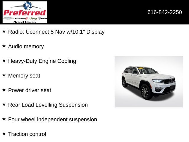This 2023 Jeep Grand Cherokee Limited 3.6 Liter V6 4WD is a true standout in its class, offering a winning combination of power, technology, and refinement. We invite you to experience the exceptional craftsmanship and performance of this remarkable SUV for yourself. Schedule a test drive today and discover why the Grand Cherokee is the perfect choice for your next adventure.