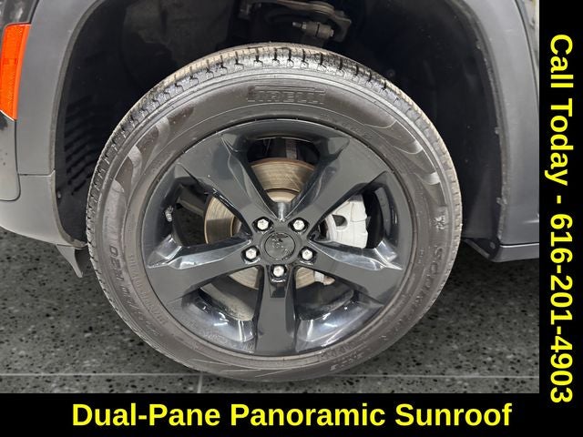 Black Appearance Package (Gloss Black Exterior Accents and Wheels: 20 x 8.5 Gloss Black Painted Aluminum), Quick Order Package 23E, 4WD, 506 Watt Amplifier, 9 Amplified Speakers w/Subwoofer, Active Noise Control System, Dual-Pane Panoramic Sunroof, Navigation System, Power Liftgate, Radio: Uconnect 5 Nav w/10.1 Display, Remote keyless entry, 3.45 Rear Axle Ratio, 4-Wheel Disc Brakes, ABS brakes, Air Conditioning, Alloy wheels, AM/FM radio: SiriusXM with 360L, Anti-whiplash front head restraints, Audio memory, Auto High-beam Headlights, Automatic temperature control, Brake assist, Bumpers: body-color, Capri Leatherette Seats, Compass, Delay-off headlights, Driver door bin, Driver vanity mirror, Dual front impact airbags, Dual front side impact airbags, Electronic Stability Control, Emergency communication system, Four wheel independent suspension, Front anti-roll bar, Front Bucket Seats, Front Center Armrest w/Storage, Front dual zone A/C, Front fog lights, Front reading lights, Fully automatic headlights, Garage door transmitter, Heated door mirrors, Heated front seats, Heated rear seats, Heated steering wheel, Illuminated entry, Knee airbag, Low tire pressure warning, Memory seat, Normal Duty Suspension, Occupant sensing airbag, Outside temperature display, Overhead airbag, Overhead console, Panic alarm, ParkView Rear Back-Up Camera, Passenger door bin, Passenger vanity mirror, Power door mirrors, Power driver seat, Power passenger seat, Power steering, Power windows, Radio data system, Rear anti-roll bar, Rear reading lights, Rear window defroster, Rear window wiper, Security system, Speed control, Speed-Sensitive Wipers, Split folding rear seat, Spoiler, Steering wheel mounted audio controls, Tachometer, Telescoping steering wheel, Tilt steering wheel, Traction control, Trip computer, Turn signal indicator mirrors, Variably intermittent wipers, Voltmeter, and Wheels: 18 x 8 Polished/Painted Aluminum.