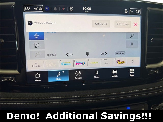Quick Order Package 27L, Safety Sphere (360 Surround View Camera System and ParkSense Front/Rear Park Assist with Stop), 10.1 Touchscreen Display, 17 x 7.0 Aluminum Wheels, 3.25 Axle Ratio, 3rd row seats: split-bench, 4-Wheel Disc Brakes, 4G LTE Wi-Fi Hot Spot, 6 Speakers, ABS brakes, Air Conditioning, Alloy wheels, AM/FM radio: SiriusXM, Apple CarPlay, Apple CarPlay/Android Auto, Auto-dimming Rear-View mirror, Automatic temperature control, Black Seats, Brake assist, Bumpers: body-color, Caprice Leatherette Bucket Seats, Compass, Connectivity - US/Canada, Delay-off headlights, Disassociated Touchscreen Display, Driver door bin, Driver vanity mirror, Driver's Seat Mounted Armrest, Dual front impact airbags, Dual front side impact airbags, Electronic Stability Control, Emergency communication system: Chrysler Connect, For Details, Visit DriveUconnect.com, Four wheel independent suspension, Front anti-roll bar, Front Bucket Seats, Front dual zone A/C, Front fog lights, Front reading lights, Fully automatic headlights, Garage door transmitter, Google Android Auto, GPS Antenna Input, Heated door mirrors, Heated front seats, Heated steering wheel, Illuminated entry, Integrated Active Noise Cancellation, Integrated Center Stack Radio, Knee airbag, Low tire pressure warning, Memory seat, MOPAR Paint Protection Film, Occupant sensing airbag, Outside temperature display, Overhead airbag, Overhead console, Panic alarm, ParkView Rear Back-Up Camera, Passenger door bin, Passenger seat mounted armrest, Passenger vanity mirror, Power door mirrors, Power driver seat, Power Liftgate, Power steering, Power windows, Radio data system, Radio: Uconnect 5 with 10.1 Display, Rain sensing wipers, Rear air conditioning, Rear reading lights, Rear window defroster, Rear window wiper, Reclining 3rd row seat, Remote keyless entry, Security system, Speed control, Split folding rear seat, Spoiler, Steering wheel mounted audio controls, Tachometer, Telescoping steering wheel, Tilt steering wheel, Touring Suspension, Traction control, Trip computer, Turn signal indicator mirrors, USB Host Flip, Variably intermittent wipers, and VoltmeteR.